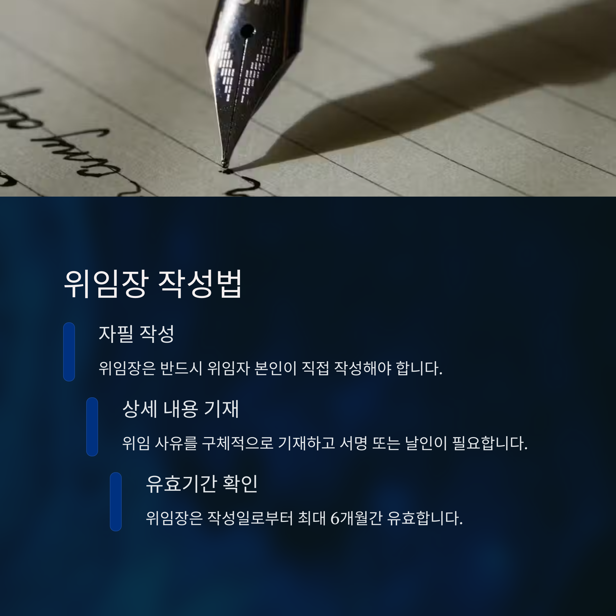 - 위임장의 유효기간은 6개월이므로 기한을 확인하세요.