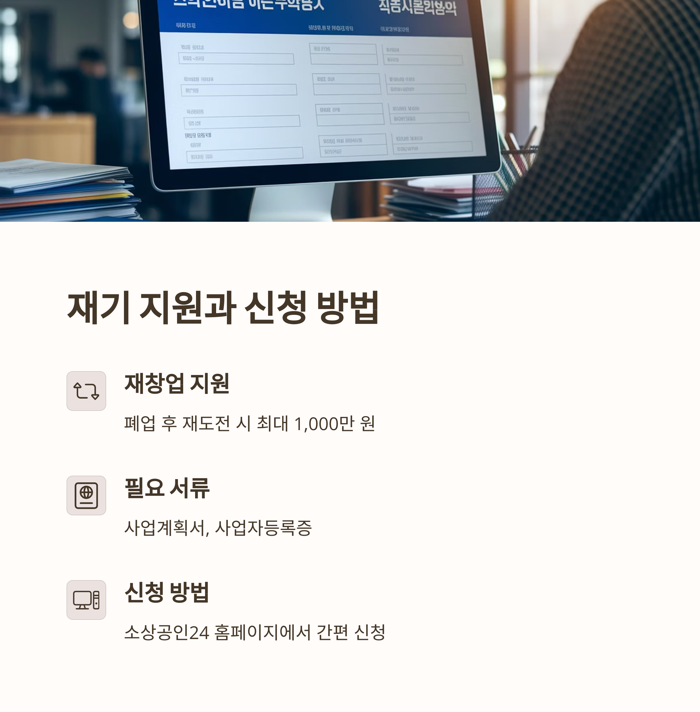그뿐만 아니라 폐업 후 재창업을 준비 중인 소상공인도 재창업 지원 프로그램을 이용할 수 있습니다.