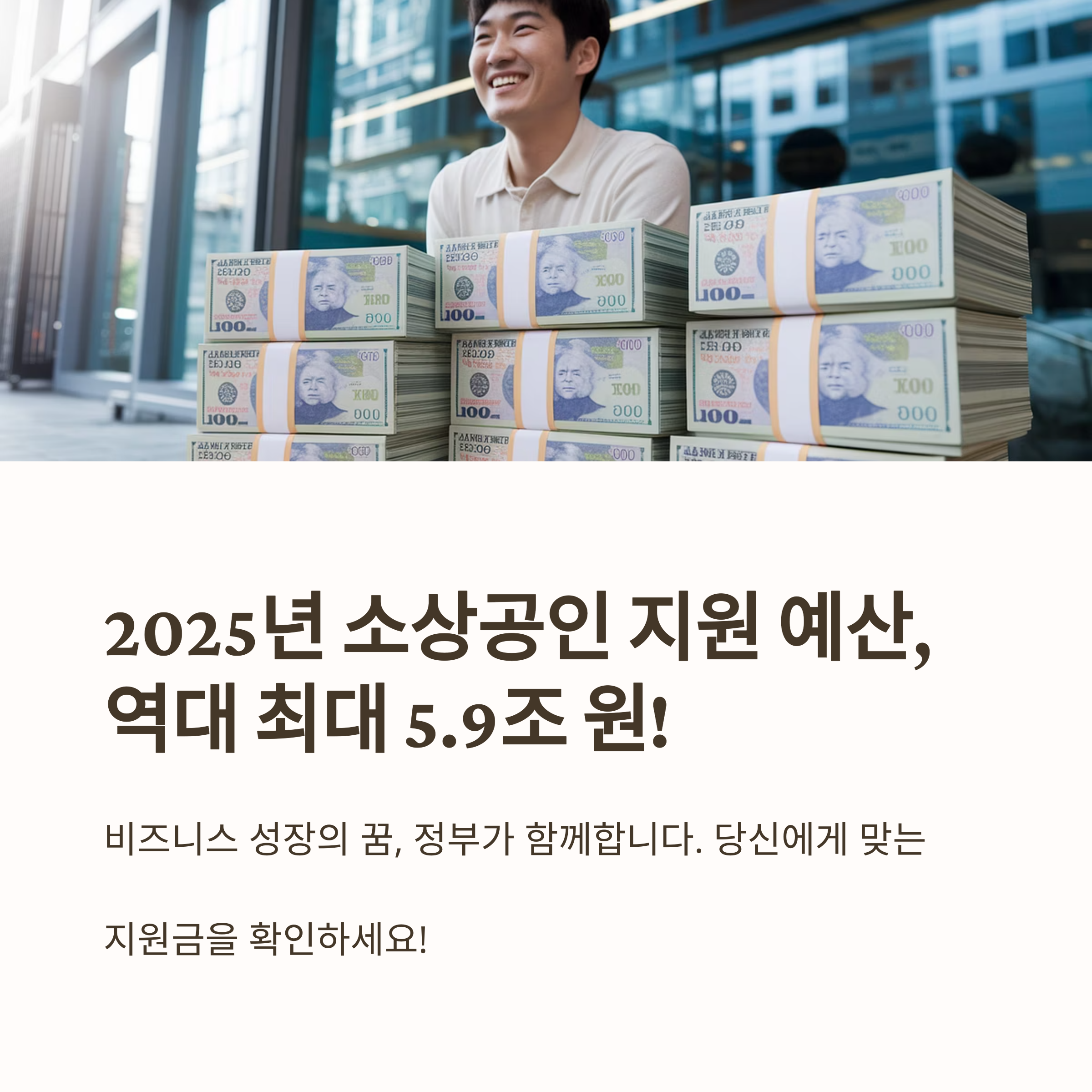 2025년 정부 소상공인 지원 예산은 역대 최대인 5.9조 원으로 책정되었습니다.