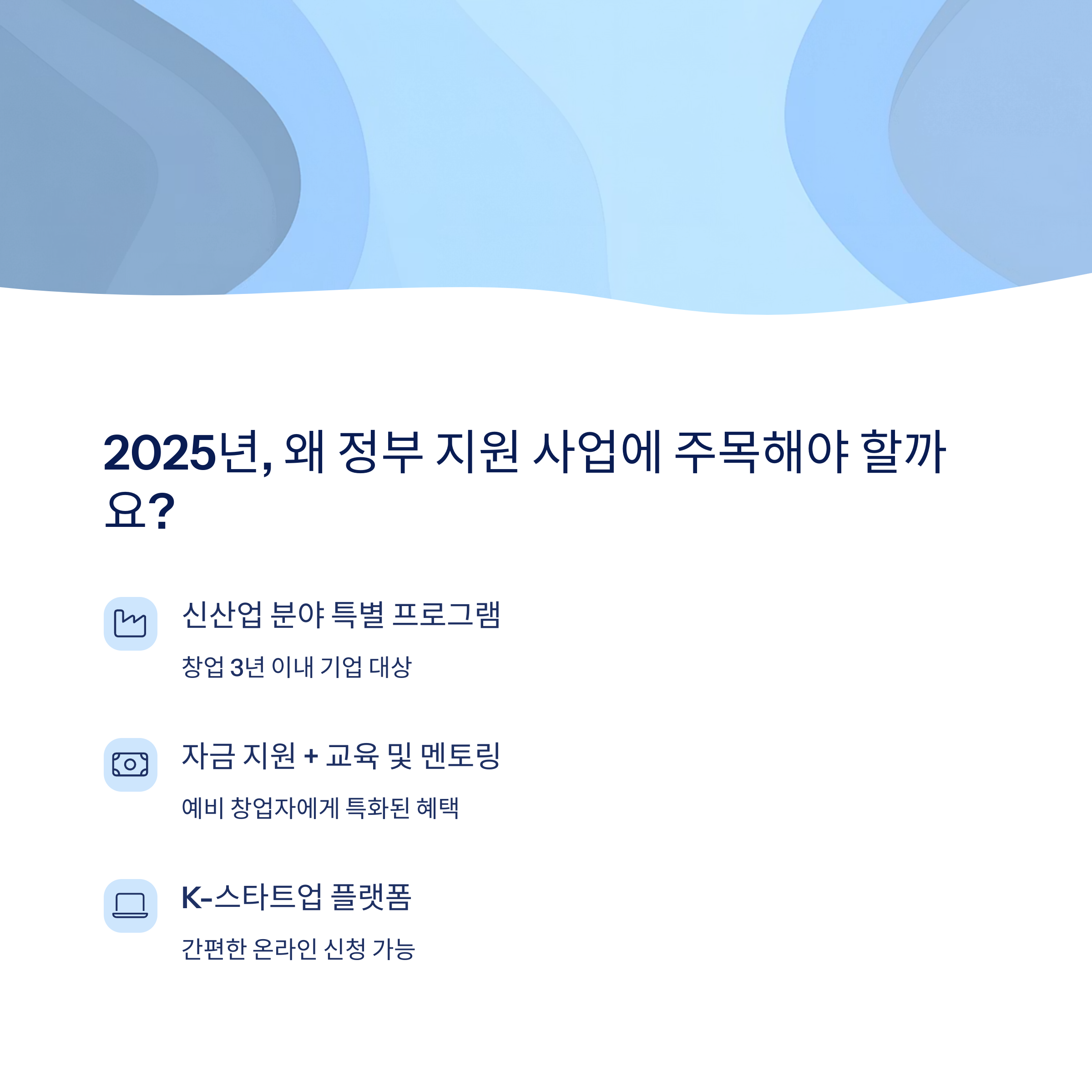 2025년 정부 창업지원사업은 신산업 중심으로 창업자의 성공적인 정착을 돕는 핵심 프로그램입니다.